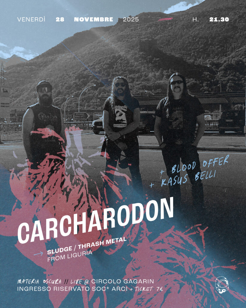 IΒ CarcharodonΒ hanno iniziato il loro percorso come power trio nel 2003, da un’idea di due fratelli Nattero (Boggio e Pixo). Dopo un’infinitΓ di demo ed EP (tra cui il leggendario “Las Fecas”), nel 2008 la band ha pubblicato il primo full length intitolato “Macho Metal”, che si Γ¨ guadagnato l’attenzione della stampa per la sua proposta unica di unire in maniera primordiale ed irriverente Old School Death Metal, Sludge/ Doom e atmosfere Blues/Country.Β