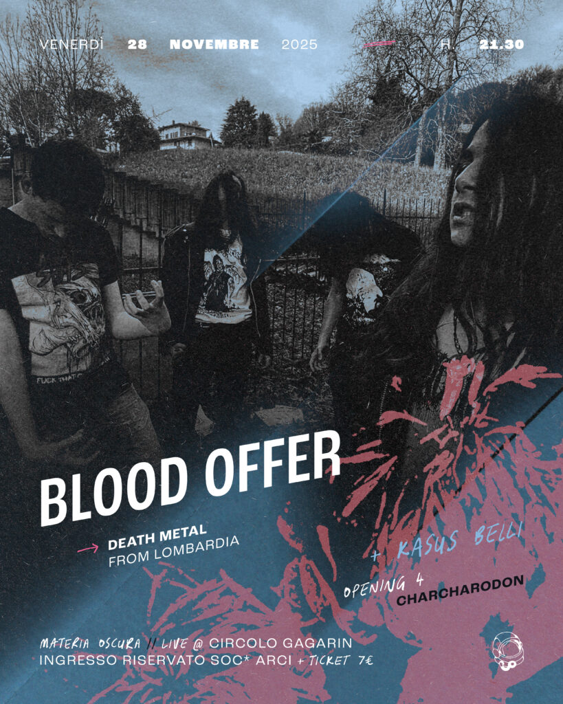 IΒ Blood Offer nascono a fine 2022, fondati da Cerberio (chitarra e voce). Dopo diversi cambi di formazione, a fine 2023 la band registra un EP di puro, viscerale, grezzo e primitivo old school death metal, “Into Evil Rites”, via Unholy Domain Records, debuttando all’A Journey in Darkness Fest. Dopo una serie di live catacombali la band entra nell’abominevole Macabro Bunker per dare vita al loro full length di debutto “All That Dies… Is Forsaken”, 38 minuti di un death metal macabro, brutale e tagliente, pubblicato sotto l’americana Iron Fortress Records il 5 settembre 2025.
