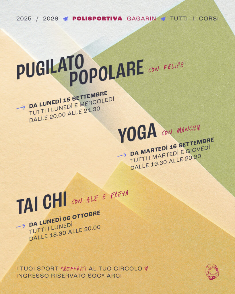 Per info e iscrizioni scrivi a corsi@circologagarin.it (oggetto TAI CHI).